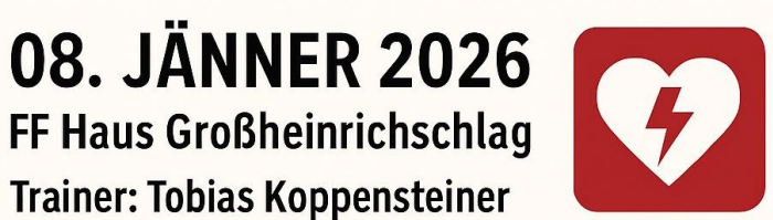 • Defibrillatorschulung: 08.01.2026, FF-Haus Großheinrichschlag