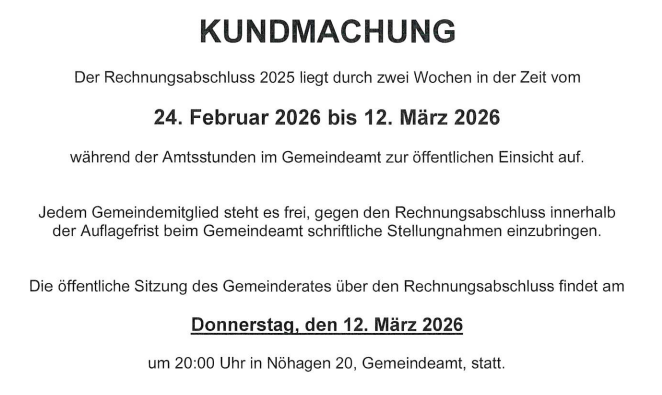 • Auflage des Rechnungsabschlusses für 2025